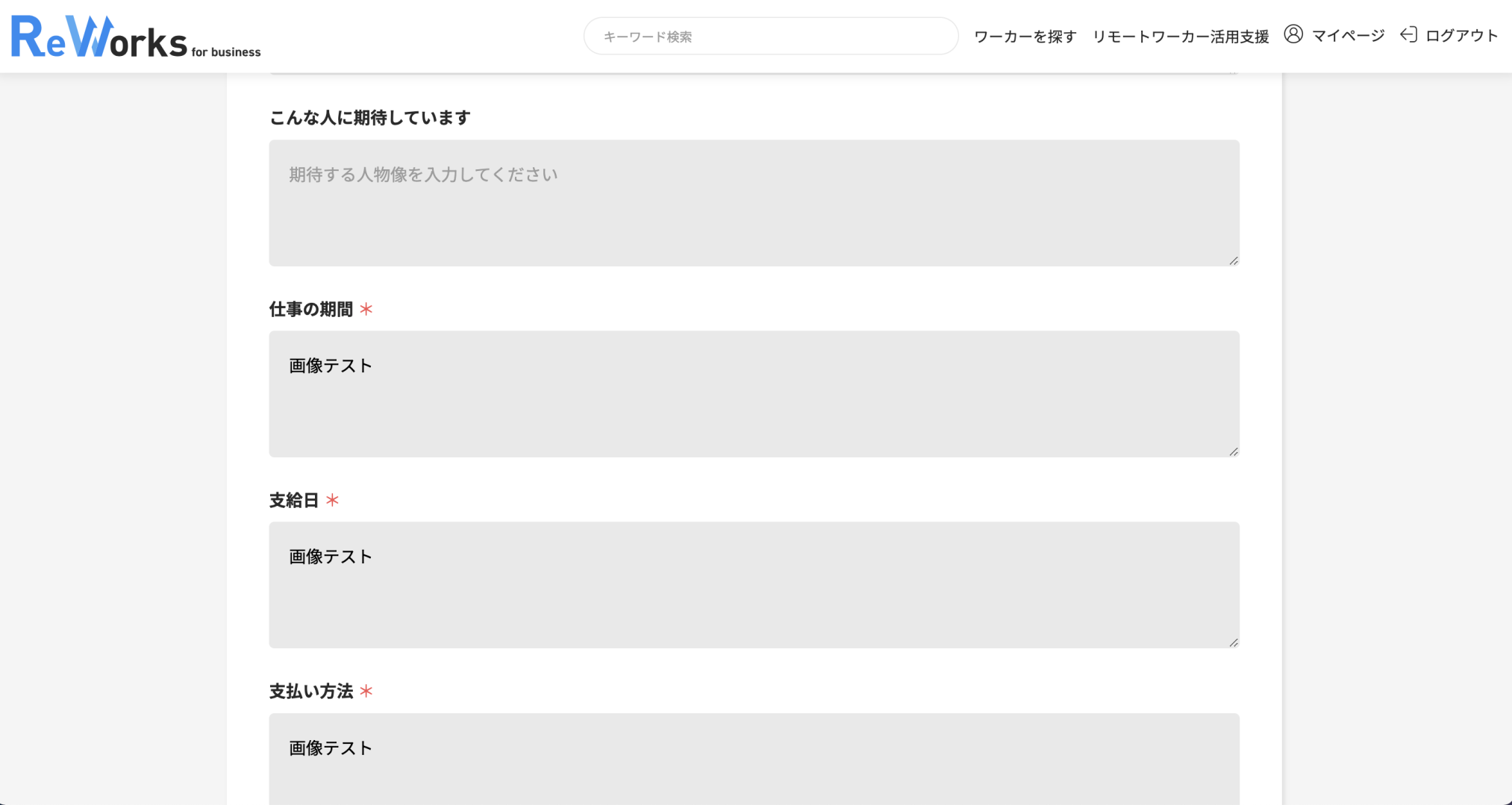 在宅ワークの求人・バイト・お仕事情報ならママワークス > 在宅ワークの求人一覧 > データ入力・タイピングの在宅ワーク求人一覧 > キャッチコピー3 最終更新日:2023/08/07 キャッチコピー3 株式会社榎本テスト 応募する(新規会員登録) ログイン 募集職種 (契約時の職種) 職種(表示用)2 雇用/契約形態 契約形態(表示用) 複製求人 就業場所/業務遂行場所 あ 仕事内容 仕事内容3 報酬 あ 掲載日 2023/06/29 〜 2023/08/14 成果物の納期予定日 あ 知的財産権の取扱い あ 応募条件 あ 勤務時間/業務時間 あ 仕事の期間 あ 報酬の支払期日 あ 支払い方法 あ 諸経費 支給なし 支給対象品目 あ 応募する(新規会員登録) ログイン この企業について確認する この企業の他の求人 ・キャッチコピーキャッチコピー ・キャッチコピー2あいうえお ・キャッチコピー2あいうえお複製求人 ・キャッチコピー2 複製 ・キャッチコピー榎本 関連求人情報 【AHD-19048】分析 株式会社なかだmama 在宅 出社 京都府 スタッフとのコミュニケーションが活発 パソコン支給もしくはレンタルあり キャッチコピー3 株式会社榎本テスト 在宅 出社 富山県 スタッフとのコミュニケーションが活発 キャッチコピー2あいうえお 株式会社榎本テスト 在宅 出社 富山県 スタッフとのコミュニケーションが活発 キャッチコピー2あいうえお複製求人 株式会社榎本テスト 在宅 出社 富山県 スタッフとのコミュニケーションが活発 AHD-10515テストC システム統括テスト 出社 福井県 継続案件 AAA Enjoy_GrP 出社 秋田県 長崎県 扶養内で調整可能 時間・曜日が選べる 1/24 ローカル連携mam その他2つ 14:14 Enter-Naviの連携テスト 在宅 在宅ワーク 【AHD-17273】「募集職種系統」で別の大分類の職種系統に変更することができない 株式会社なかだmama 在宅 北海道 青森県 岩手県 宮城県 秋田県 山形県 福島県 茨城県 栃木県 群馬県 埼玉県 千葉県 東京都 神奈川県 新潟県 富山県 石川県 福井県 山梨県 長野県 岐阜県 静岡県 愛知県 三重県 滋賀県 京都府 大阪府 兵庫県 奈良県 和歌山県 鳥取県 島根県 岡山県 広島県 山口県 徳島県 香川県 愛媛県 高知県 福岡県 佐賀県 長崎県 熊本県 大分県 宮崎県 鹿児島県 沖縄県 海外 残業なし・少なめ 週3日以内勤務 Test1001-1-Mail Enjoy_GrP 出社 秋田県 長崎県 扶養内で調整可能 時間・曜日が選べる 1/24 ローカル連携mam 職種2つ 14:16 Enter-Naviの連携テスト 在宅 北海道 在宅ワーク 【在宅テックサポート】お客様からの電話のお問い合わせ対応業務をお任せ! 株式会社テスト直義 在宅 北海道 青森県 岩手県 宮城県 秋田県 山形県 福島県 茨城県 栃木県 群馬県 埼玉県 千葉県 東京都 神奈川県 新潟県 富山県 石川県 福井県 山梨県 長野県 岐阜県 静岡県 愛知県 三重県 滋賀県 京都府 大阪府 兵庫県 奈良県 和歌山県 鳥取県 島根県 岡山県 広島県 山口県 徳島県 香川県 愛媛県 高知県 福岡県 佐賀県 長崎県 熊本県 大分県 宮崎県 鹿児島県 沖縄県 海外 在宅ワーク ブランクOK 時間・曜日が選べる 主婦が活躍中 在宅ワーカー活用実績あり キャッチコピー2 複製 株式会社榎本テスト 在宅 出社 富山県 スタッフとのコミュニケーションが活発 都道府県から探す 北海道 青森県 岩手県 宮城県 秋田県 山形県 福島県 茨城県 栃木県 群馬県 埼玉県 千葉県 東京都 神奈川県 新潟県 富山県 石川県 福井県 山梨県 長野県 岐阜県 静岡県 愛知県 三重県 滋賀県 京都府 大阪府 兵庫県 奈良県 和歌山県 鳥取県 島根県 岡山県 広島県 山口県 徳島県 香川県 愛媛県 高知県 福岡県 佐賀県 長崎県 熊本県 大分県 宮崎県 鹿児島県 沖縄県 海外 職種から探す 営業・マーケティング データ入力・タイピング クリエイティブ 編集・制作 人事・総務・経理・広報 ライティング・翻訳 PG・SE・PM その他 おすすめ検索軸 単発案件 業務委託 データ入力・タイピング 大阪府 福岡県 沖縄県 広島県 東京都 熊本県 海外 注目の在宅ワーク求人 自分に合ったペースで! 在宅で働く 初めてでも安心! 未経験OK 残業なし・少なめ! 子どもとの時間を増やす 在宅もOK! 時間が選べる 経歴・資格など スキルを活かす 専業主婦の方もOK ブランクOK 関連コラム Let’s start“在宅ワーク” 在宅ワークをはじめる時に必要なことって? これから在宅ワークを考えている方に知っておいて欲しい情報が満載です! コラム一覧を見る > 在宅ワーカー体験談 在宅ワークにはどんな仕事があるのでしょうか。 様々な在宅ワーカーの仕事についてリアルな声をご紹介♪ コラム一覧を見る > 在宅で働きやすい環境づくり 在宅ワークをする際に重要になってくる、ご自宅の環境。 現役の在宅ワーカーが働きやすい様々なアイデアをご案内しています。 コラム一覧を見る > おすすめコラム 主婦が安全に働ける在宅ワーク20選!仕事選びのポイントも押さえよう★ コラムを見る > パソコン一つで一人でも自宅でできる仕事をドーンとご紹介♪ コラムを見る > 自宅でできる仕事に役に立つ資格とは?在宅ワークを考えている方必見です! コラムを見る > 体験談からわかる在宅ワークの実態